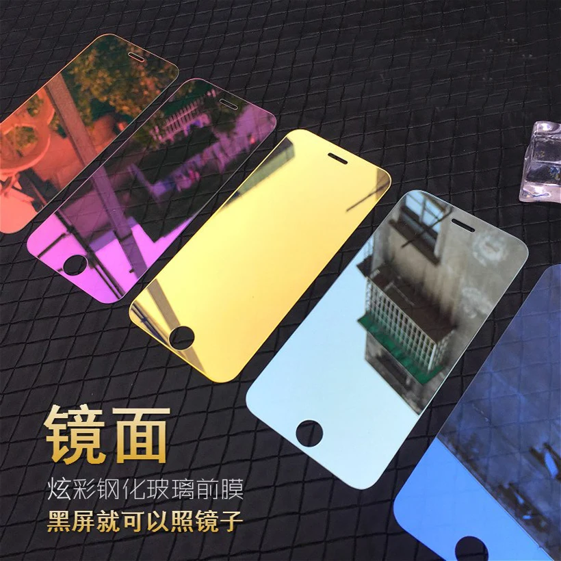 Goede Kopen Voor iPhone 7 6 6 s 5 5 s 5C SE Luxe Kleurrijke Spiegel Screen Protector Film voor iPhone 6 6 s 7 Plus XS 9 H HD Gehard Glas Goedkoop